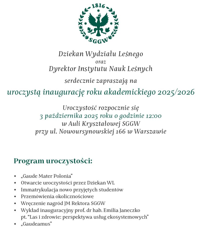 Uroczysta Inauguracja Roku Akademickiego na Wydziale Leśnym